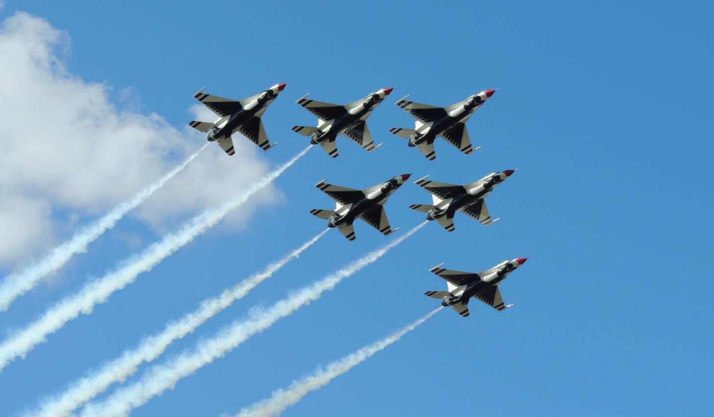 In addition to the Thunderbirds, the United States Air Force F-35A Lightning II and the U.S. Navy F-18 Super Hornet demonstrated their capabilities.